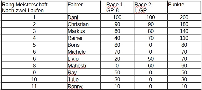 Bei strahlendem Sonnenschein wurden heute wieder fleissig Punkte für die MG-Swiss Meisterschaft gesammelt. Dabei wurde der L-GP in drei Durchgängen gefahren. Nach dem heutigen zweiten Lauf zur Meisterschaft steht nun nicht nur die Tagesrangliste ( L-GP ) sondern auch das Zwischenklassement zur Meisterschaft. Es bleibt weiterhin spannend! Die nächste Chance um weiter Punkte zu sammeln ist der 27.07.2025 dann fahren wir den Tuna-GP .