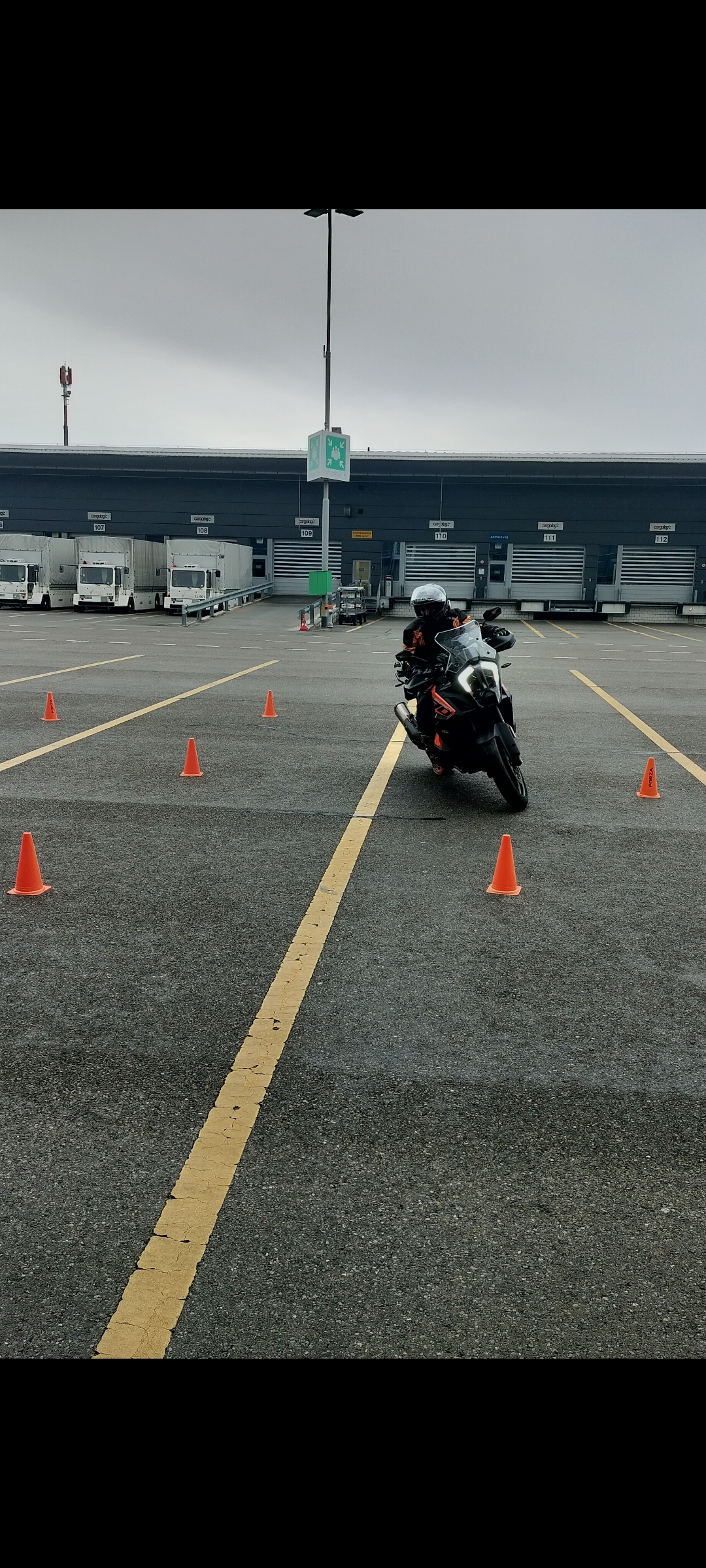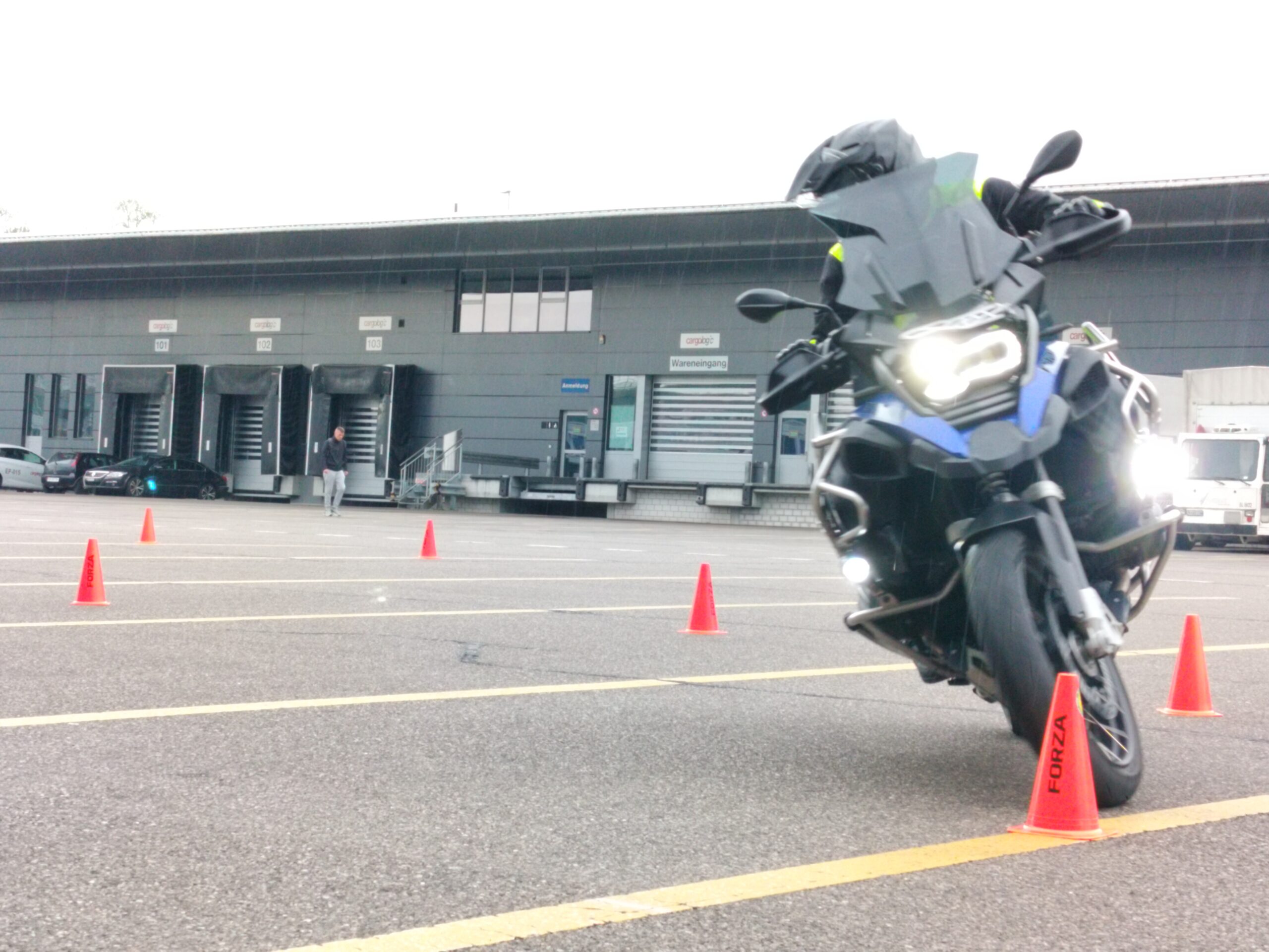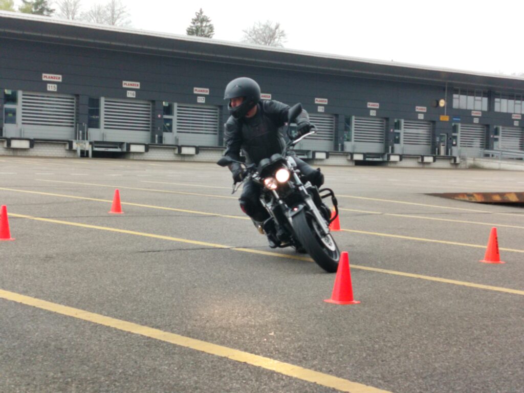 Leider beschäftigen sich die meisten Motorradfahrer zu selten mit dieser Art der Motorradbeherrschung. Beim heutigen Training absolvierten wir zu erst an drei verschiedenen Übungen ein Techniktraining. Zum einen wurde der Slalom mit 3,5m Meter Abstand geübt.Der Abstand ist übrigens um 0,5 Meter länger als an der Motorradprüfung. Der grössere Abstand wird jedoch durch erhöhen der Geschwindigkeit schnell zur Herausforderung.